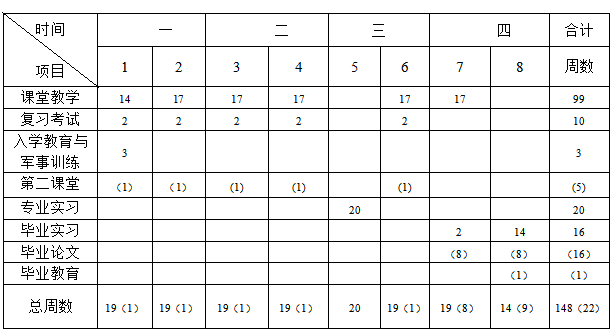 4. 毕业论文:要求员工第七学期在公司集中完成毕业论文开题工作,第八学期员工在毕业实习期间完成毕业论文的调研和撰写工作,4月份返校完成毕业论文答辩及后续工作,共16周。
