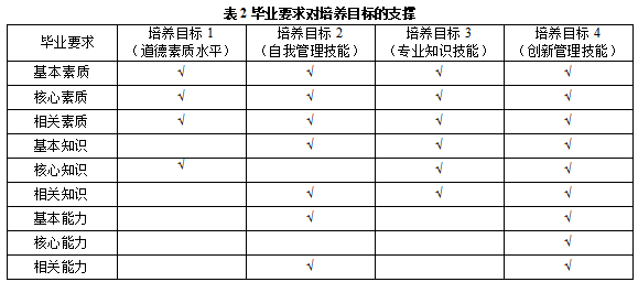 4.创新管理能力。掌握创新创业活动所需要的基本知识,具备创新创业所需要的探索精神、创新意识和实践能力,了解行业环境、创业机会和创业风险。能适应不同场景或完成不同类型工作,具备合作、遵守、控制、协商、执行、创造、思考、沟通等基本特质。