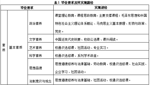 本专业在知识、素质与能力方面的要求及其实现途径(见表1)。