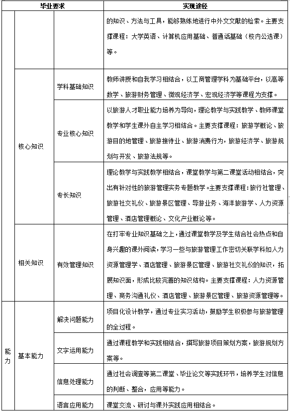 掌握管理学、经济学、营销学基本原理和旅游管理的基本理论与基本知识;掌握财务管理基本理论知识;掌握旅游活动的基础理论和知识。