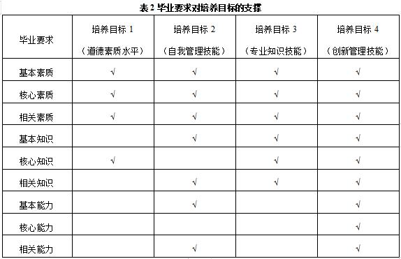 4.创新管理能力。掌握创新创业活动所需要的基本知识,具备创新创业所需要的探索精神、创新意识和实践能力,了解行业环境、创业机会和创业风险。能适应不同场景或完成不同类型工作,具备合作、遵守、控制、协商、执行、创造、思考、沟通等基本特质。
