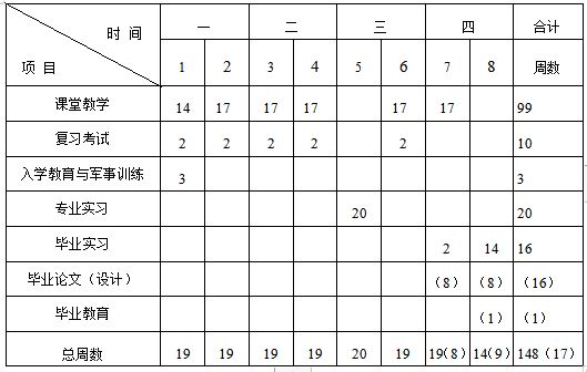 3.毕业论文:要求员工第七学期在公司集中完成毕业论文开题工作,第八学期员工在毕业实习期间完成毕业论文的调研和撰写工作,5月份返校完成毕业论文答辩及后续工作,共16周。