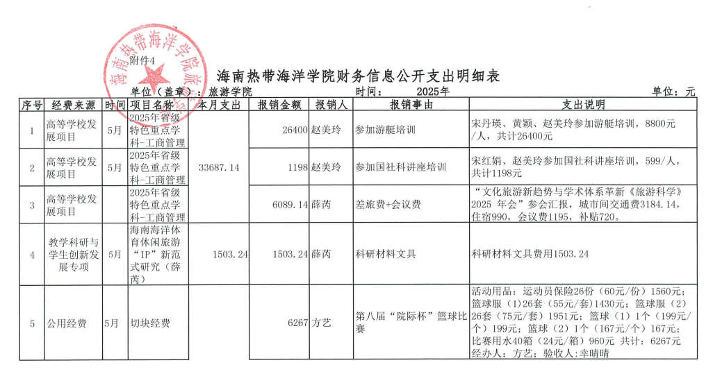 2025年5月财务信息公开