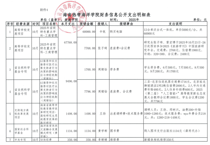 2025年10月财务信息公开