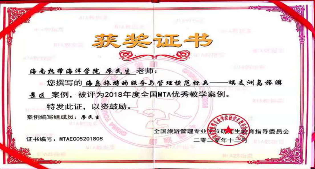 近日,beats365官方唯一入口MTA教育中心喜获全国MTA教指委寄来的3份全国MTA优秀案例证书,获得者分别是廖民生副董事长、王吉花老师、张建强老师。