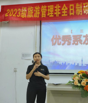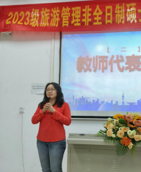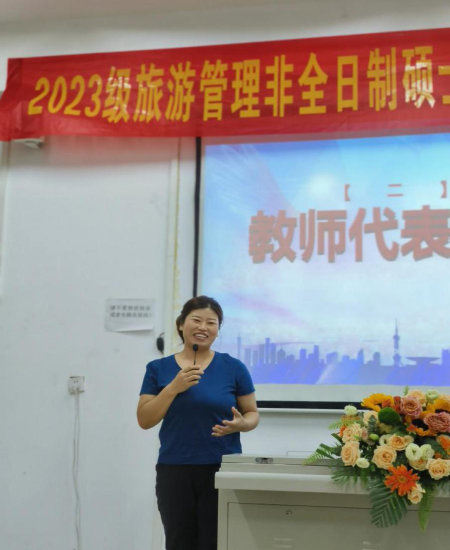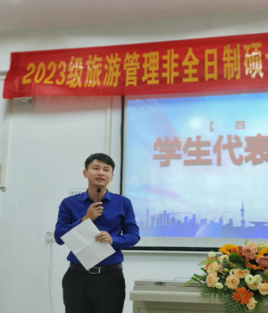 2019级优秀毕业研究生代表高娟,以自身就业经历向大家展示旅游行业就业的美好前景,诠释刻苦学习的意义,为大家加油鼓劲。