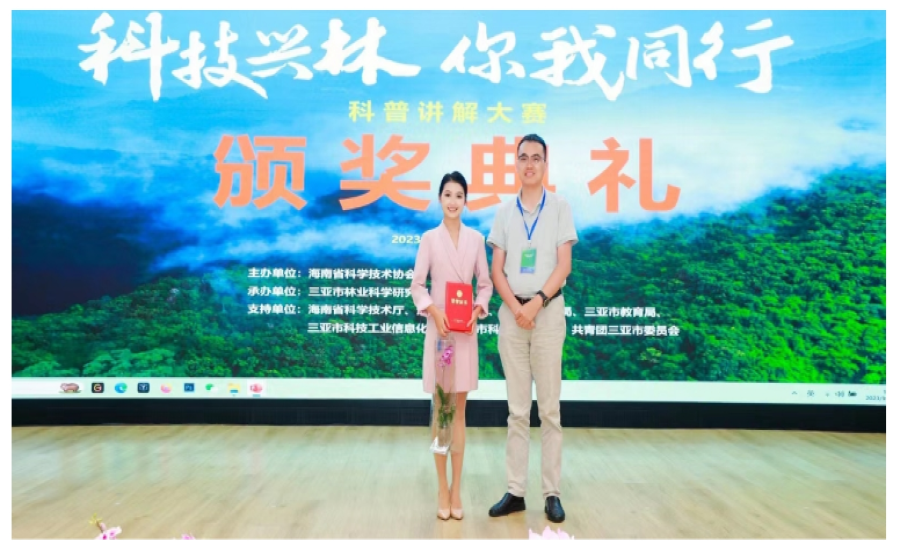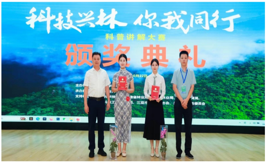 1022日上午,“科技兴林 你我同行科普讲解大赛在海南省法官进修公司举行,公司2020级酒店管理专业员工屈颖和2022级旅游管理专业员工安家瑶分别获得本次赛事一等奖和二等奖,公司荣获本次赛事“优秀组织奖”。