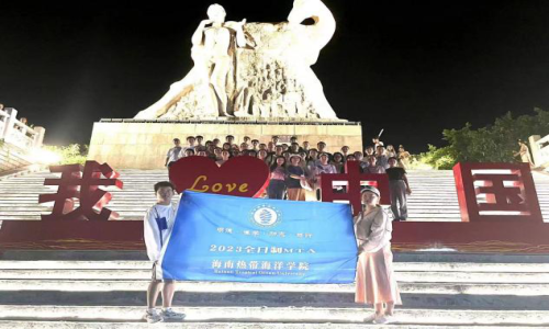 天涯海角景区实践教学活动结束之后,师生们乘车前往鹿回头景区开展下一阶段实践教学活动,乘着星光到达鹿回头景区脚下。在景区行政总监张嘉宝的带领下参观了鹿雕、一见钟情石、海哭不烂石等著名景点,聆听美丽动人的爱情故事,了解景区发展历史。